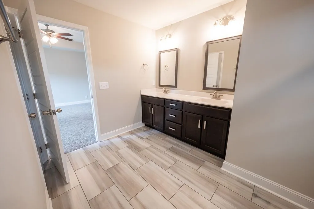 Absolutely stunningly unique floor plan. Large walk-in pantry. Enormous master suite. Double vanity with additional makeup vanity in master bathroom with double vanities with oversized tile shower. Large bedrooms with walk-in closets. Laundry room upstairs! Covered deck with a fan!